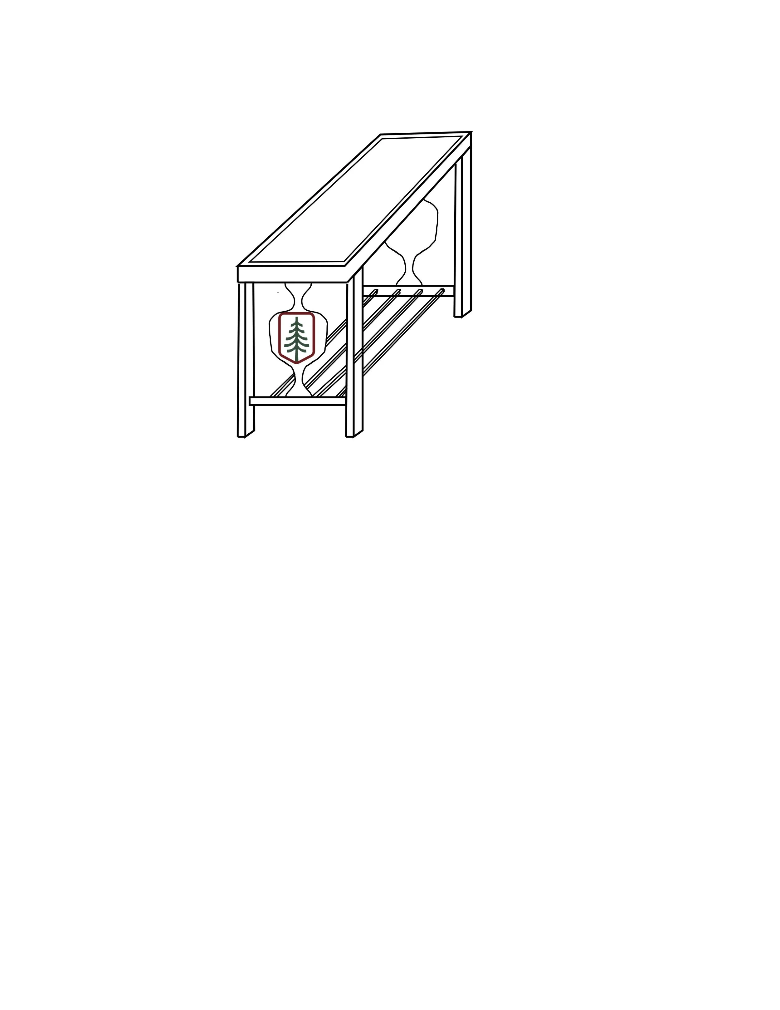 Jack was on a trip with Scott to talk to a bank about loaning him the money to buy Camps Kenwood and Evergreen (K&E) the Camps Scott owned and had directed for 30 years. They stayed at a hotel full of mission/craftsman style furniture and furnishings. Jack learned that Scott was really into the Arts & Craft movement. He sent me some pictures from the hotel and explained how much he appreciated the chance Scott was giving him to take over K&E. He asked if I could think of a way to make something special to thank Scott and at the same time tie it to K&E. Well, I started thinking about doing something in stained glass but after a while I sent Jack this rough picture and asked if something like this would do and if the version of the K&E logo in the pic would work. He loved the idea and I said I’d never done anything like the panel in the picture but I’d see if I thought I could do something.
